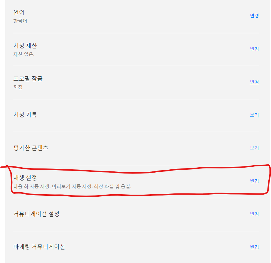 3. 밑에 사진과 같이 재생설정 변경을 들어가 주세요.