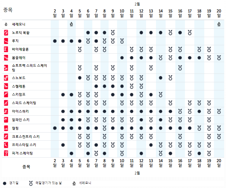 이번 동계올림픽은 오는 설이 지나고 4일부터 20일까지 총 17일간 열릴 계획입니다. 이번에도 우리나라 근처에서 열리다보니 시간대는 빨리시작 해도 10시 늦어도 12시 안으로 모두 끝나는 일정으로 되어있습니다.