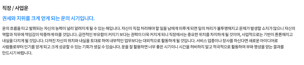 총론, 연애운, 재물운, 직장/사업운, 가정/건강운, 월별운세 등등까지 나와있습니다!