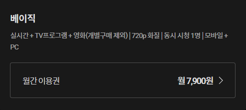 근데 혼자 이용하기엔 720p화질로 밖에 볼 수 없는데 이럴거면 차라리 스탠다드 연간이용권을 이용하는 게 월 260원이 나가지만 더 나을 것 같다는 생각이 드네요